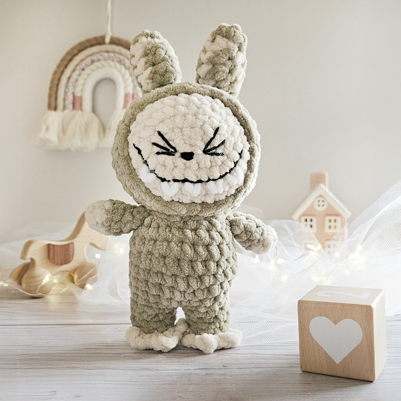 Chaque peluche est réalisée à la main avec amour, de légères variations peuvent exister et rendent chaque pièce unique.